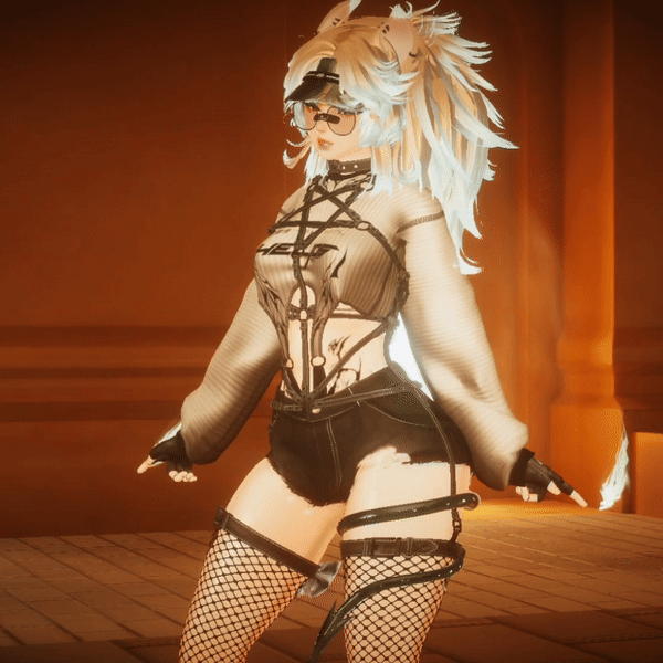 ✾ Hue shift, hair brightness/saturation, skin options, dissolve toggles, contacts (Eyes, boop, headpat, glasses and neck kisses), trails, audiolink, RGB mode, Anime/Realistic head versions, damage per second.